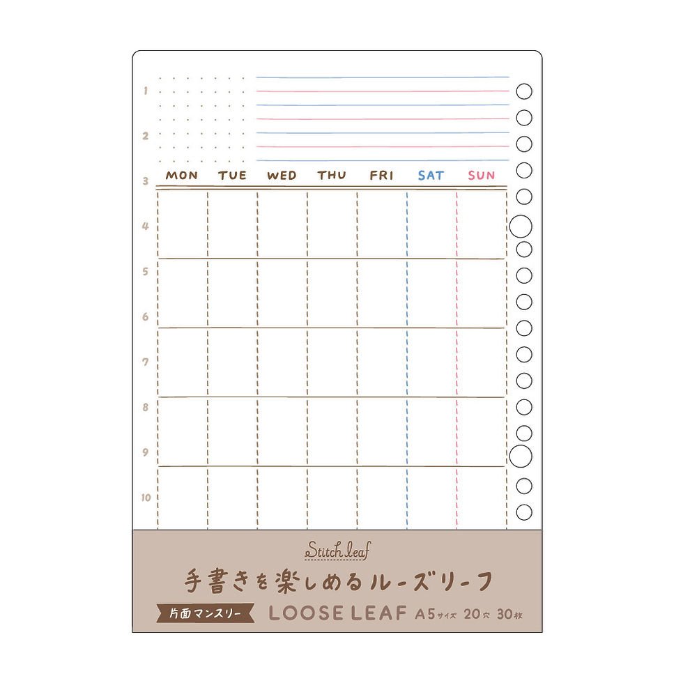 手書きを楽しめるルーズリーフ A5<片面マンスリー>